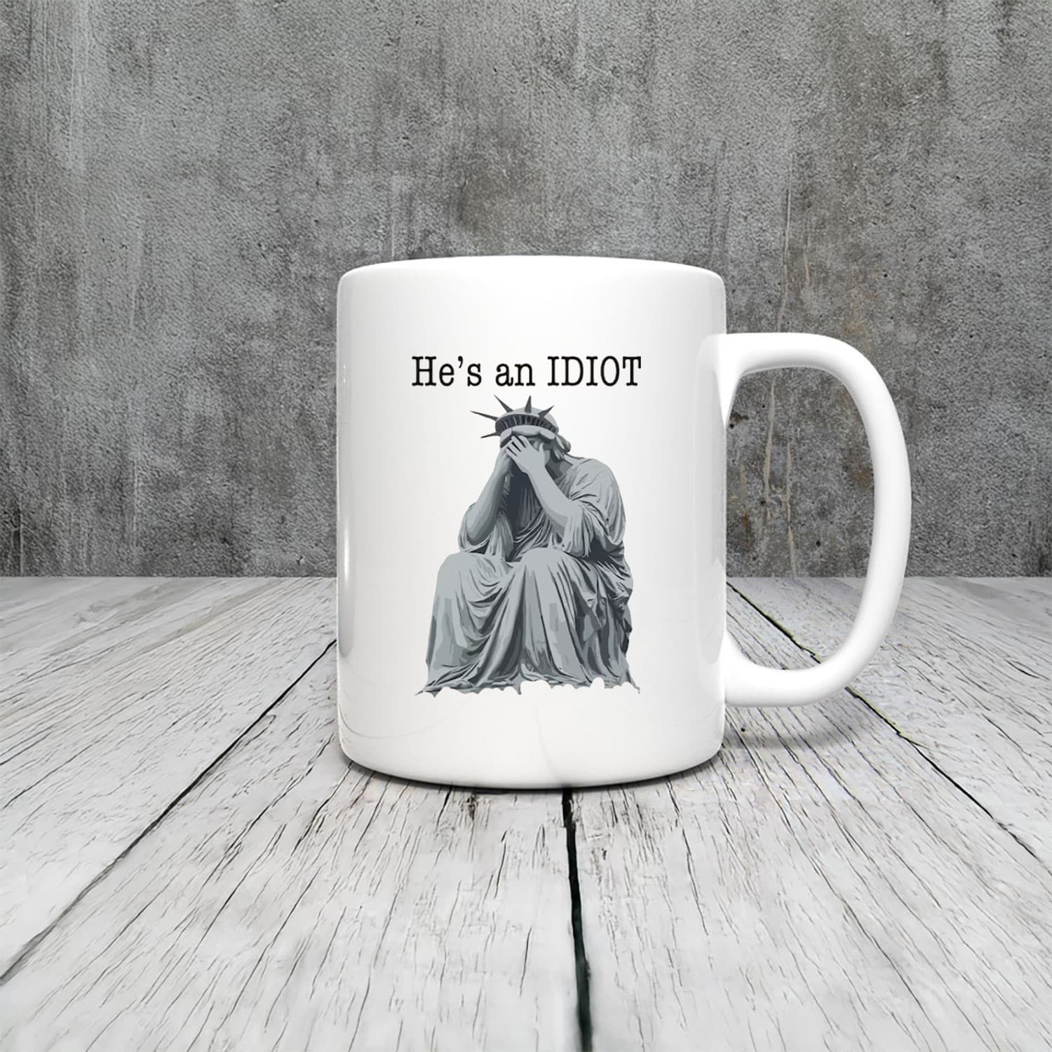 Unleash your inner rebel with our bold “He is an IDIOT Mug,” a powerful statement piece perfect for the outspoken individual. This high-quality ceramic mug boasts a vibrant, eye-catching design featuring the phrase “He is an IDIOT” in a striking font, making it a conversation starter guaranteed to turn heads. Its durable construction ensures longevity, while the comfortable, ergonomic handle provides a pleasant drinking experience. More than just a mug, it’s a symbol of defiance, a daily reminder to stand up for your beliefs, and a fun, irreverent way to express your political views. Enjoy your morning coffee or evening tea with a side of unapologetic self-expression. This mug is dishwasher and microwave safe for ultimate convenience. Make a statement, one sip at a time.