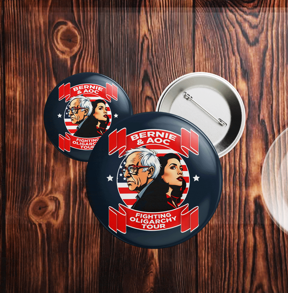 Be the first to review “Bernie Sanders & AOC Fighting Oligarchy Tour 2025 Button” Cancel reply