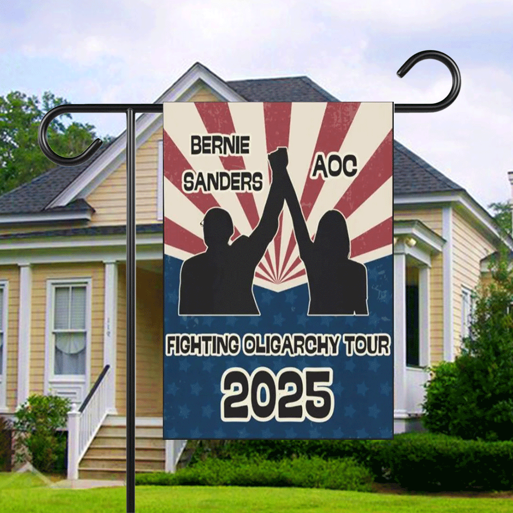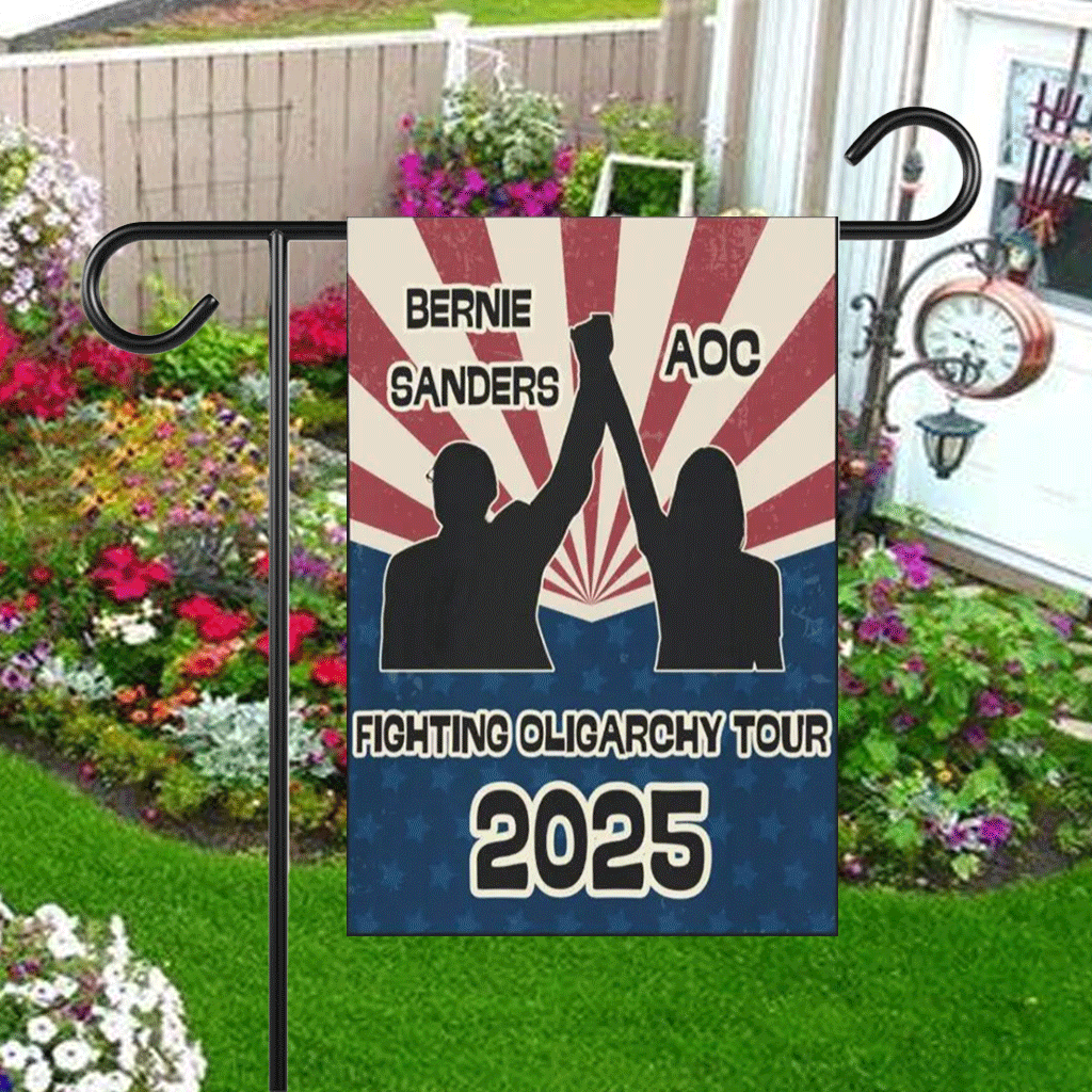 Bernie Sanders AOC Fighting Oligarchy Tour Activist 2025 Flag