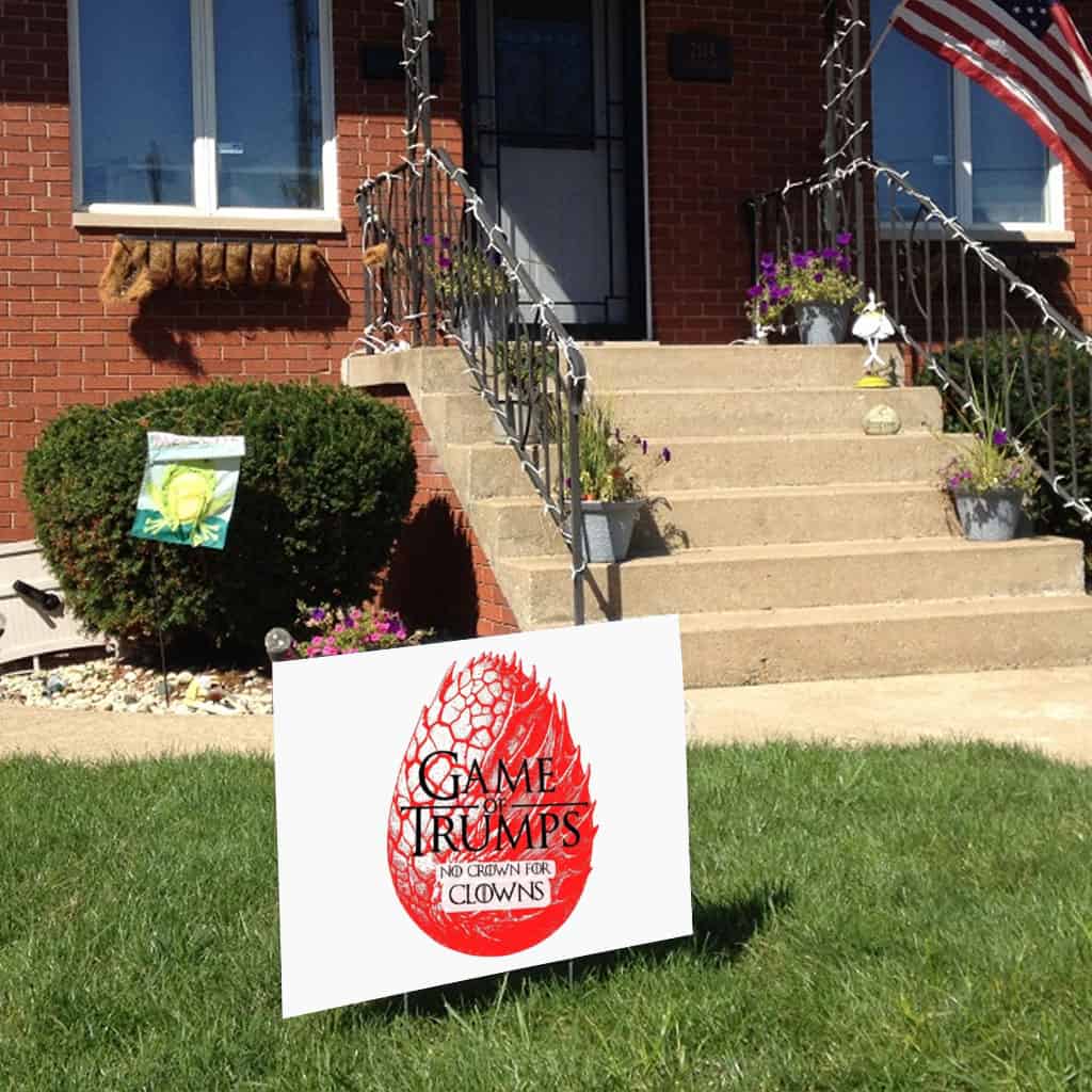 Be the first to review “Game of Trumps – No Crown for Clowns – Political Parody Anti Trump Yard Sign” Cancel reply